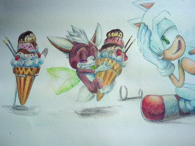 この色鉛筆は溶かすととても色が鮮やかになるので、サンデーの色は溶かしながら塗っています。