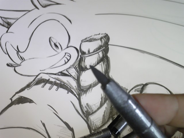 鉛筆線はあまりきにしないようにして、いろいろ駆使してペン入れしました。