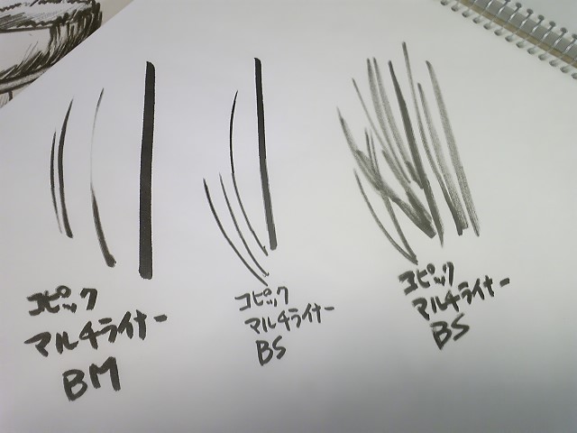細い書き込みはもちろんSでやりますが、あとはMサイズでやったりします。