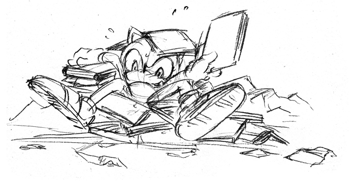 ファイルに埋もれるちいソニ。うっかり靴を履いたままでしたww