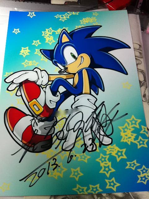 名刺を渡して。お友達コード交換して。色々ソニックのお話、もっとしたかったんですが、お父さんもしびれを切らしてる感じだったので、今度必ずコンタクトとろうね!って約束と、ピクシブを見てくれているというのを聞いて、お父さんに、ピクシブからメッセージ送って下さいーと言いました。