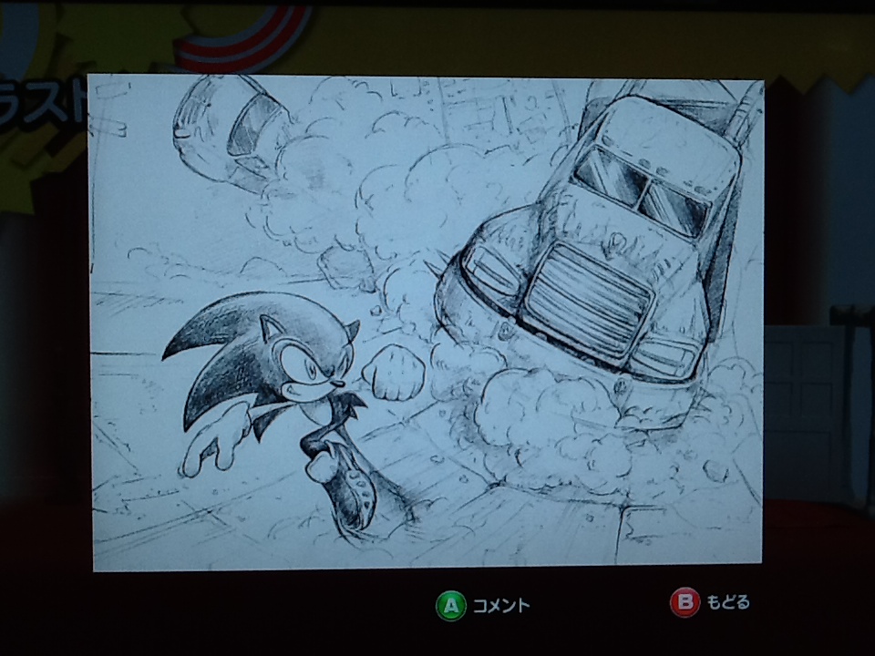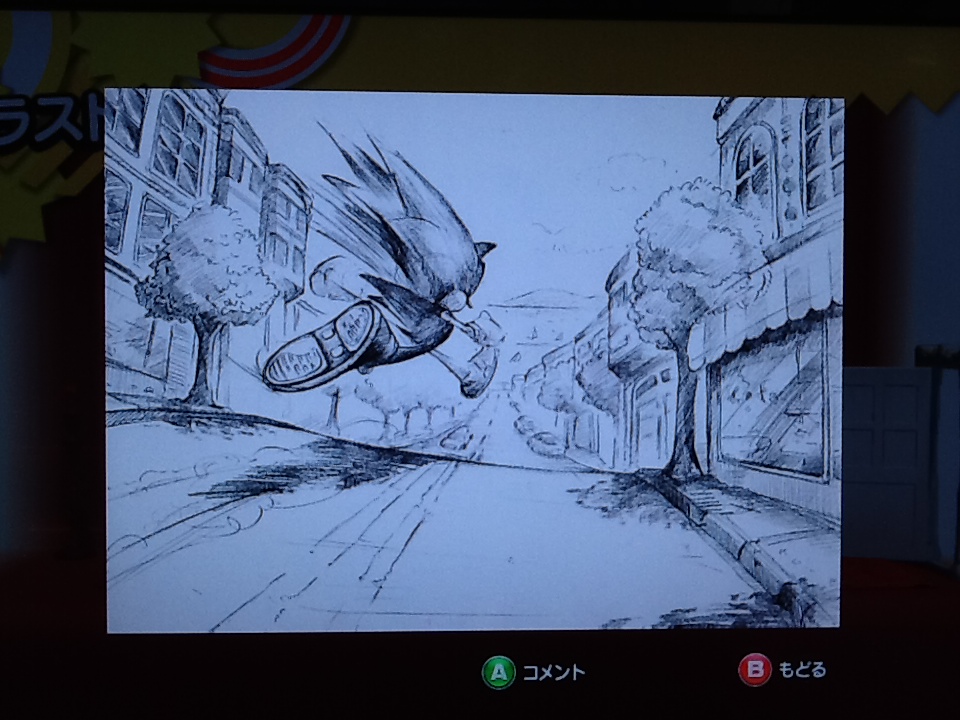 (これはソニックジェネレーションのソフトの中に入っているコンセプトアートの写真です。当日も同じものを見ました。綺麗なものを見たい方は、白の冒険をがんばってね!)